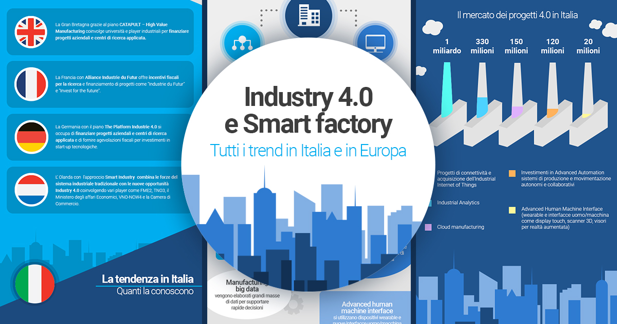 Tecnologie coinvolte, valore e investimenti in materia di Industry 4.0 e Smart Factories.