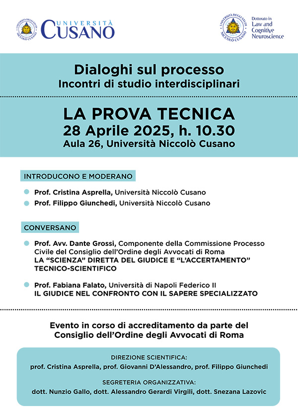 Evento in corso di accreditamento da parte del Consiglio dell’Ordine degli Avvocati di Roma