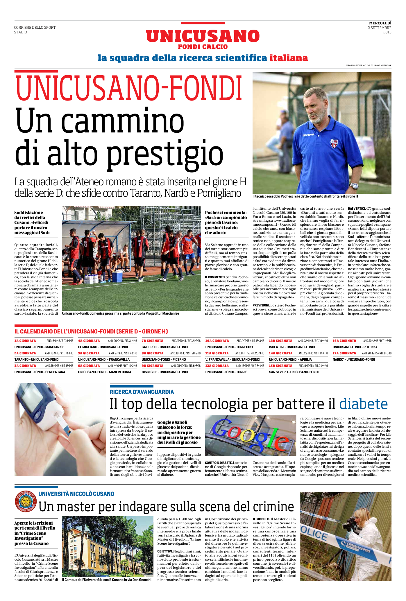 Grande soddisfazione dai vertici dell’Università Niccolò Cusano: “Siamo felici di poter portare il nostro messaggio nel Sud”. Il tecnico dell’Unicusano Fondi Calcio, Sandro Pochesci, rivela: “Sarà un girone pieno di fascino. Questo è il calcio che adoro”.