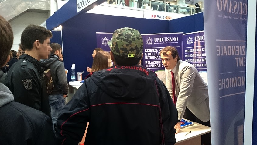 La UniCusano ha consigliato, indirizzato e preso per mano gli studenti che sono accorsi per informarli circa l’offerta formativa che è in grado di proporre. L’Università degli studi Niccolò Cusano ha proposto un’offerta formativa ancora più ricca e articolata rispetto al passato, avendo implementato le facoltà di Giurisprudenza, Scienze Politiche, Economia e Scienze della Formazione, con ulteriori indirizzi di studio. Nata come università telematica, in soli 6 anni l’UniCusano ha avuto la forza ed il coraggio di tirare su un vero e proprio campus in stile americano, con lezioni giornaliere in presenza, seminari di approfondimento e convegni tematici ad integrare il punto di forza dell’ateneo: l’erogazione online dei materiali didattici. L’UniCusano oggi vanta oltre 11mila studenti che da quest’anno avranno la possibilità di scegliere tra ulteriori 8 percorsi di studio: la nuova magistrale in Scienze Politiche, Scienze Psicologiche del lavoro e delle organizzazioni (triennale), Psicologia delle organizzazioni e dei servizi (magistrale) e ben 5 percorsi di studio in Ingegneria, tra civile, elettronica, industriale e meccanica.