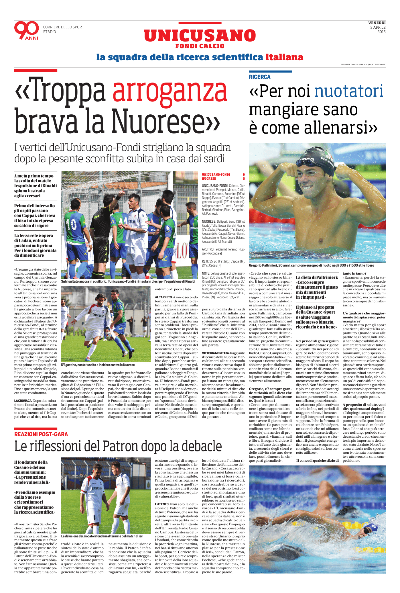 “Per noi sportivi mangiare sano è come fare un buon allenamento”, ha detto Paltrinieri. Che ha svelato qualche dettaglio sulla sua alimentazione: “Cerco sempre di mantenere in equilibrio gli alimenti durante i cinque pasti della giornata”. Da Paltrinieri anche un plauso al progetto della Cusano: “Sport e salute viaggiano sullo stesso binario, ricordarlo è un bene”.