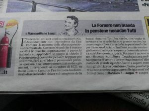 Da prima pagina l’invito di Salvini a Francesco Totti. Le parole del leghista sul giallorosso sono state riprese da Ansa, RaiSport, Gazzetta, Corriere dello Sport, Gazzetta del Mezzogiorno, Affaritaliani, Tuttosport, Quotidiano.net.