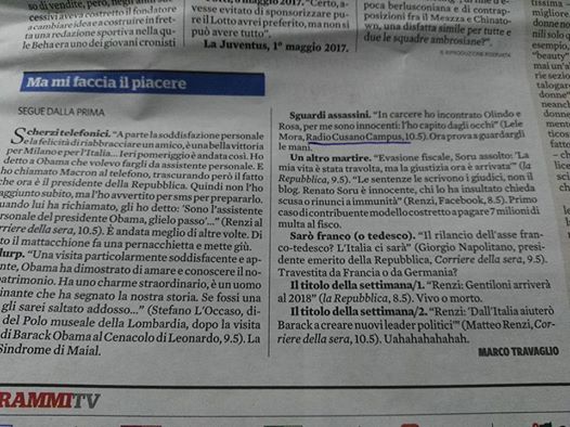 Il Tempo (in foto) e Il Fatto Quotidiano, nella rubrica di Marco Travaglio, hanno ripreso notizie nate in su Radio Cusano Campus rilanciandole sia nelle edizioni online che su quelle cartacee.