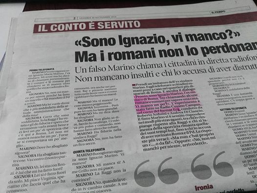 Il Tempo, nell’edizione cartacea, ha ripreso integralmente un esperimento realizzato proprio dalla radio dell’Università Niccolò Cusano e legato all’ex sindaco di Roma, Ignazio Marino.