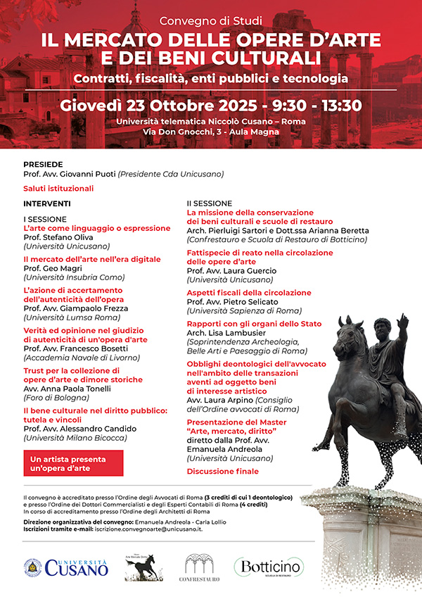 23/10/2025 Il mercato delle opere d’arte e dei beni culturali. Contratti, fiscalità, enti pubblici e tecnologia