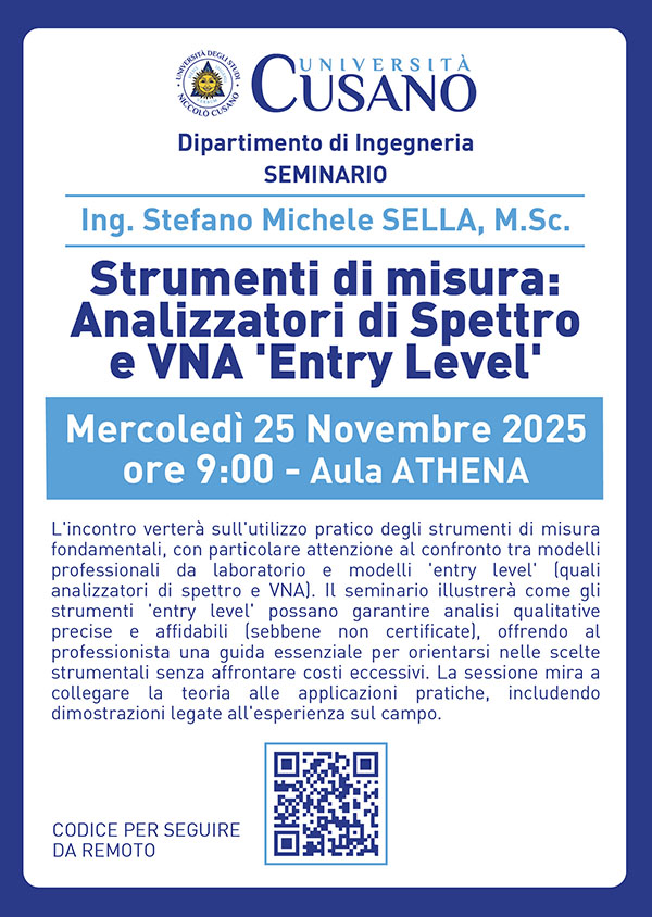 25/11/2025 Seminario Strumenti di misura: Analizzatori di Spettro e VNA ‘Entry Level’ L’incontro verterà sull’utilizzo pratico degli strumenti di misura fondamentali, con…